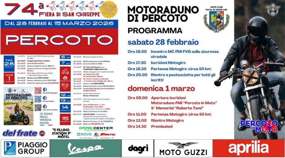 In occasione della 74ÂŞ Fiera di San Giuseppe, torna il grande appuntamento con il Motoraduno di Percoto.